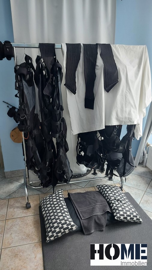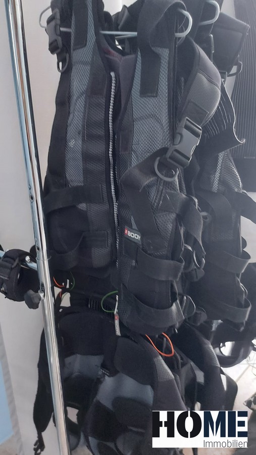 Vermietet wird der ca. 15m² große Raum mit Dusche, einem EMS-Gerät, 6x XBody EMS Anzüge und 6x Trainingsunterwäsche.