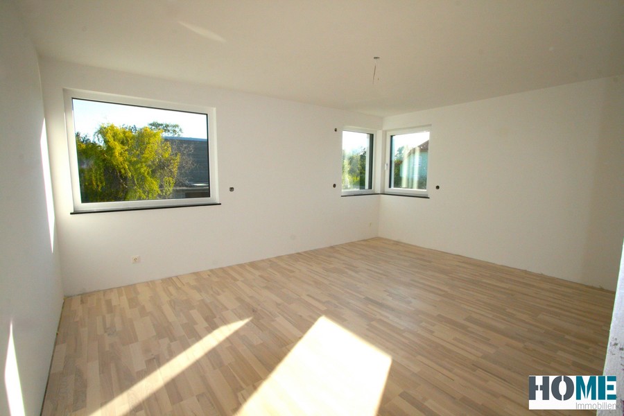 Durch den hellen, freundlichen  Eingangsbereich, gelangen Sie in das lichtdurchflutete Wohnzimmer mit Platz für den Essbereich und der offenen Küche mit Kochinsel (nicht im Preis inkludiert).
