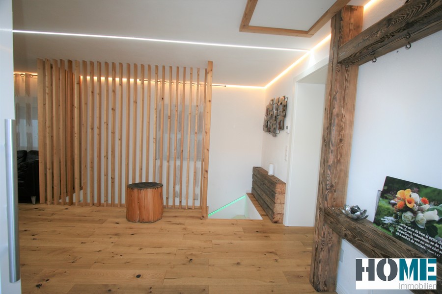 Ein Highlight dieses Hauses sind die LED Lichtakzente die im ganzen Haus sowie an der Wand entlang der mit italienischen botticino Steinen verlegten Treppe zu finden sind.